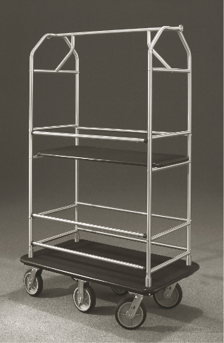 This cart is 25” wide, 71” tall and available in two lengths, 48.5” and 40.5”. Solid Rubber Wheels, Removable Shelf and Side Containment Rails are Standard. 1” dia. Rails. Upgrade to Pneumatic Wheels may be added at an additional charge.